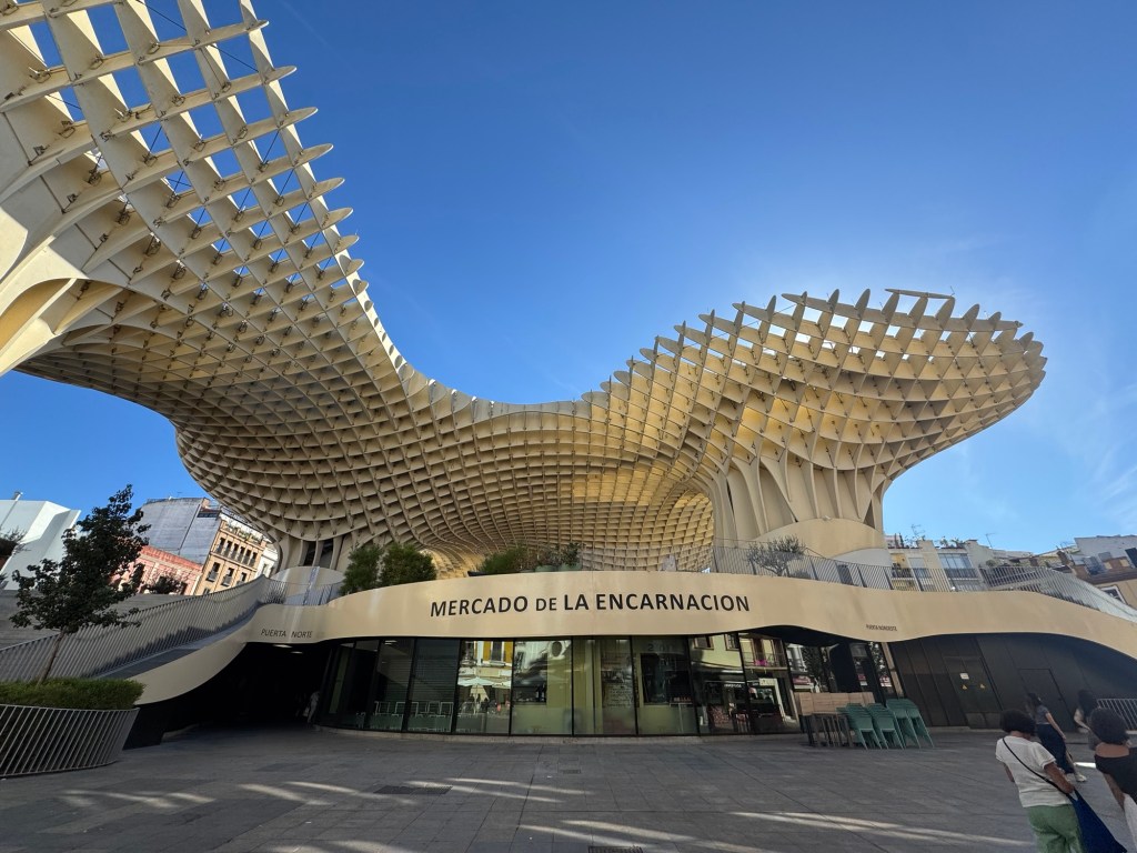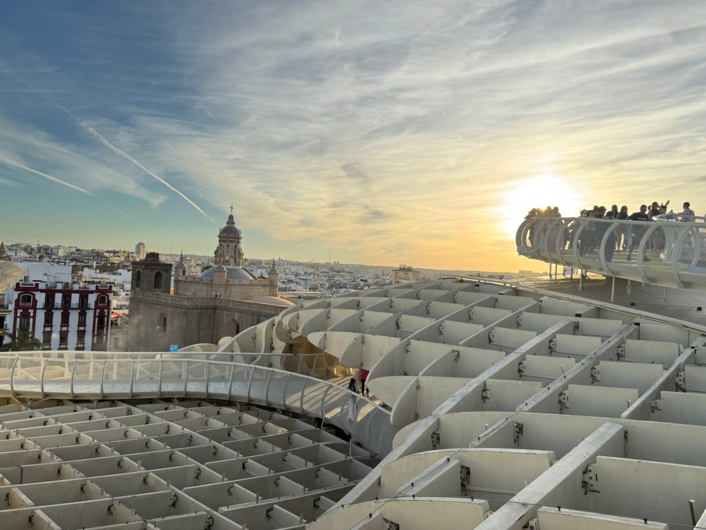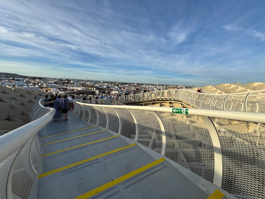 On our arrival day, we visited the Metropol Parasol also known as the Setas de Sevilla or the Mushrooms of Sevilla. This is a large, mostly wooden structure that stands in the old quarter of Sevilla. The wood is covered with polyurethane which makes the structure safe from collapsing due to any possible decay of the wood. It’s a great place to visit to get endless 360 degree views of the city.