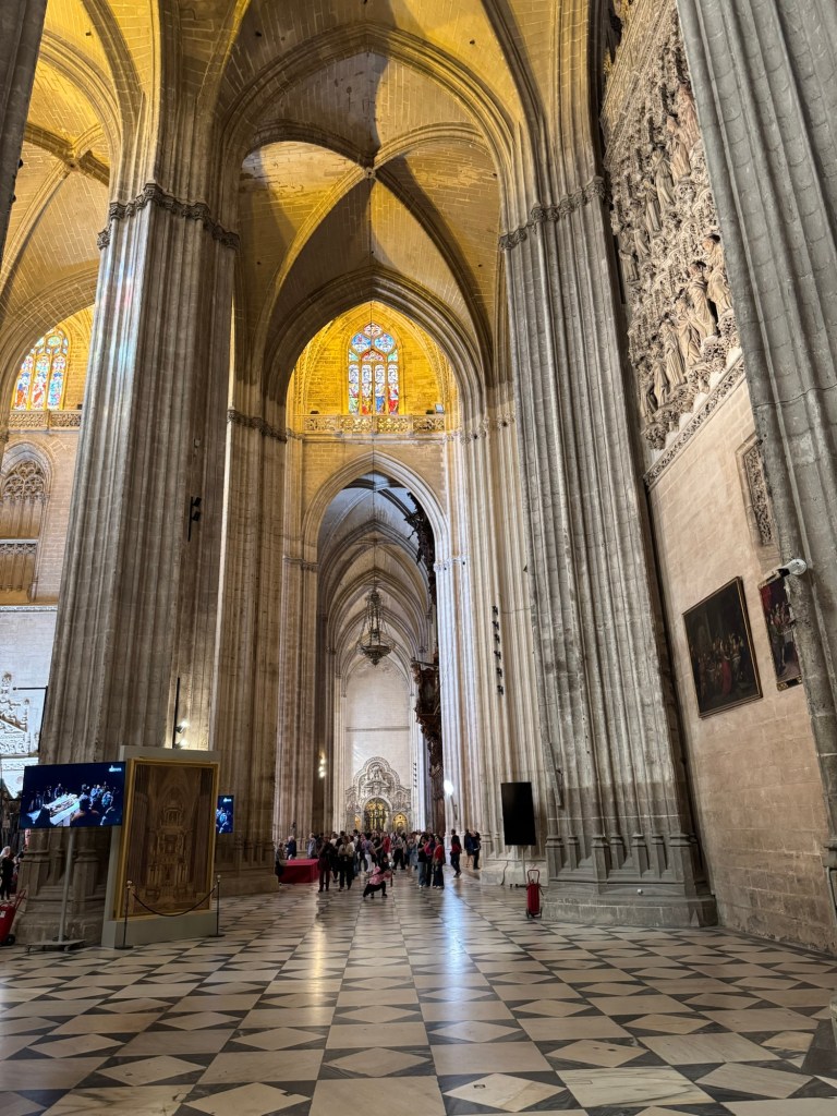 Our final day in Sevilla was spent visiting the Catedral de Sevilla and the Plaza de España both of which are magnificent. The Catedral de SevIlla is one of the largest churches in the world and the largest Gothic cathedral. The Giralda is the bell tower of the cathedral. Its’ height is 343 feet and the price of the ticket included climbing the tower for a wonderful bird’s eye view of the city. In addition, we visited Plaza de España for a second time on this trip. It was built for the 1929 Ibero Americana Exposition and designed by the architect Aníbal Gonzalez Alvarez Ossorio. It is the most beautiful plaza we have ever visited.