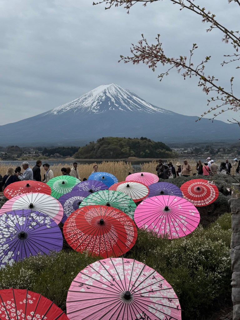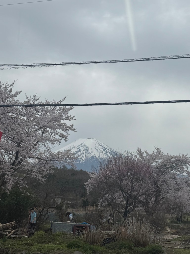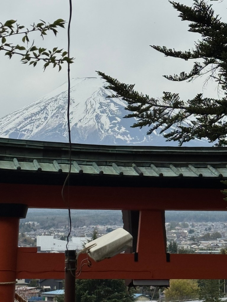 Our second day in Tokyo, we got out of the city via a Mt. Fuji excursion I booked for us. I had read that weather in the area where the mountain is can be fickle, and we may not be able to see the whole mountain. I was hoping we would get lucky, and we did! Even though it was cloudy, we were able to see Mt. Fuji completely, and we were thrilled. Here are a few pictures of this majestic spot.