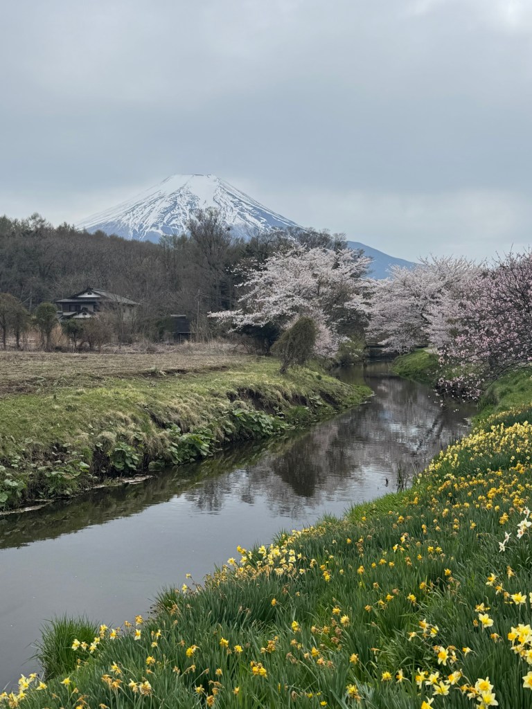 The cherry blossoms near the mountain were in full bloom and so spectacular to be surrounded by them.