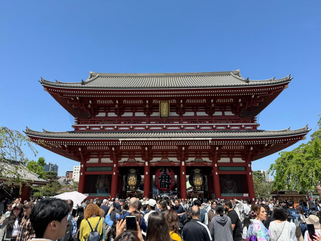Senso-Ji Temple. When you enter the temple, the shrine is right in front of you, and that is where you can say a prayer plus make an offering. Praying is done by purifying at a water fountain, bowing, placing your hands in prayer 🙏🏼, and being silent. This is the ritual at a Buddhist temple.